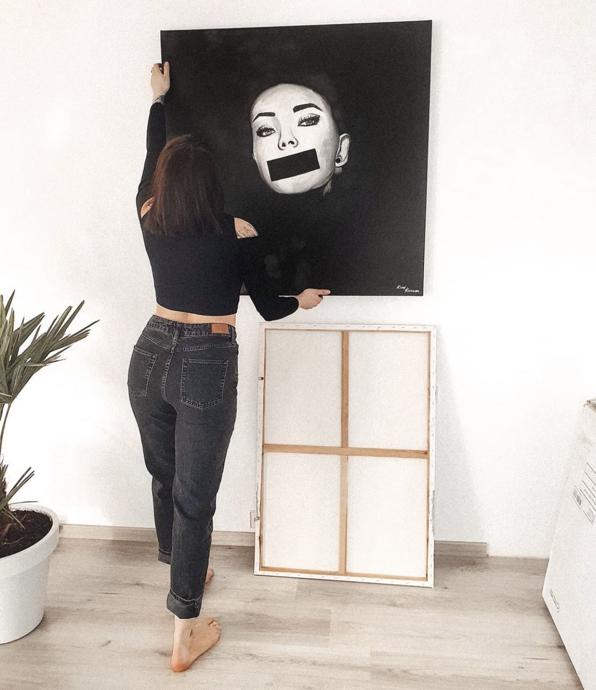 Es gibt keine Grenzen bei der abstrakten Kunst. Deswegen finde ich auch immer wieder neue Dinge, die mich begeistern oder mit denen ich arbeiten möchte. Für mich ist jedes Werk ein neuer Prozess. Alles passiert aus meinem Gefühl heraus und nicht aus einem Konzept. Während ich es genieße, wenn zuhause alles stimmig ist und seinen rechten Platz und Ordnung hat, breche ich bei meiner Kunst genau aus diesem System aus, geben die Kontrolle ab und lass mich vollkommen von meiner Intuition leiten. So erschaffe ich Kunstwerke mit sehr ausdrucksstarken Strukturen in meist dunkleren Farben und auch wenn alles intuitiv passiert, ist jedes kleinste Detail unterbewusst gewollt und wichtig für das Bild.